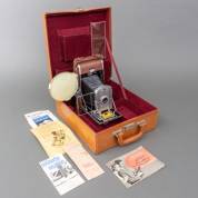 Analoge fotocamera in koffer, model 95 A Land Camera, uitvoering Polaroid, jaren '50 -mist een schroefje, maar lijkt verder ongebruikt-