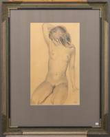 Eduard Johannes Fredericus Houbolt (1885-1954), vrouwelijk naakt, potlood en houtskool op papier, r.o. gemonogrammeerd en gedateerd 1942 -enkele kleine vlekjes in papier-, 50 × 30 cm