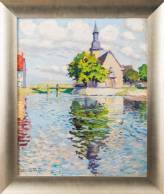 Lucien Haffen (1888-1968), kerkje aan het water, olieverf op doek, l.o. gesigneerd, verso met sticker omschreven als omgeving Straatsburg, 66 × 54 cm