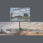Piet Mulder (1919-2001), drie werken: 'Stroom bij Flatford', 'Caldey Island', en 'Tenby', alle aquarel op papier, gesigneerd en gedateerd, afmetingen grootste 26 × 37 cm