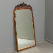 Gefacetteerde Soester spiegel in notenhouten lijst met losse gesneden kuif, 115 × 54 cm