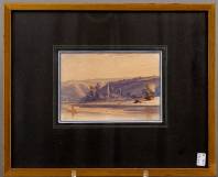 Europese School: gezicht op een rivierdal, aquarel, niet gesigneerd, 19e eeuw, 9,5 × 14 cm