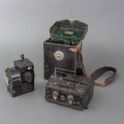 Twee camera's: Sept 35mm opwindbare filmcamera, uitvoering Debrie, en Le Megascope stereocamera, uitvoering E. Caillion -beide niet getest-