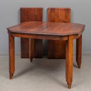 Rechthoekige teakhouten tafel met twee tussenbladen, tweede helft 20e eeuw, maat ingeklapt 79 × 108 × 101 cm, tussenbladen elk 44 cm lang