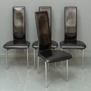 Vier zwart lederen stoelen met verchroomd stalen onderstel, model S44, ontwerp Giancarlo Vegni en Gianfranco Gualtierotti, uitvoering Fasem, Italië, eind 20e eeuw