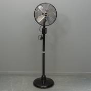 Zwartgelakte stalen ventilator staand op wieltjes, uitvoering Cinni, India -niet getest-, 167 × Ø 44 cm
