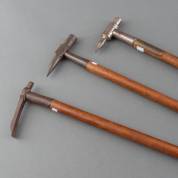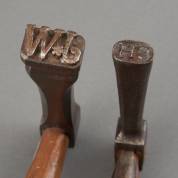 Twee houten bosbouwersbijlstokken met smeedijzeren grepen waarmee bomen gebrandmerkt werden: één met de initialen C.H., lengte 78 cm, de ander monogram J.W., lengte 76 cm, beide Centraal-Europa, 18e/19e eeuw