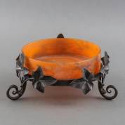 Glazen schaal in metalen montuur met klimopdecoratie, ontwerp mogelijk Muller Frères, eerste kwart 20e eeuw, Frankrijk, 11 × Ø 26 cm