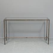 Gebronsd stalen sidetable met glazen blad, in de stijl van Diego Giacometti, modern, 80 × 141 × 40 cm