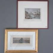 Twee prenten: 'Amsterdam, water en achterzijde der beurs', uitgegeven door G.G. Lange, 19e eeuw, 14 × 18 cm, en 'Genève', 19e/20e eeuw, 7 × 18 cm