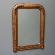 Spiegel met afgeronde bovenhoeken in vergulde pâte lijst met parelrand en bloemmotieven, 20e eeuw -slijtage aan vergulding, kleine defecten aan pâte-, 88 × 66 cm