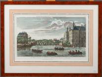 Ingekleurde opticaprent: 'Le Binnen Amstel et la maison des Orphelins de la Diaconie, à Amsterdam', door Basset, circa 1780, 26 × 41 cm