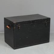 Zwartgelakte hutkoffer -één hengsel gebroken-, 59 × 94 × 52 cm