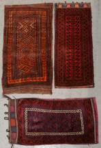 Drie langwerpige Perzische tassen / kussenhoezen Belouche, grootste 123 × 66 cm