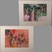 Wout van Heusden (1896-1992), twee aquatinten: vliegend paard, gedateerd '75, en abstracte compositie, gedateerd '77, de grootste 34,5 × 71 cm