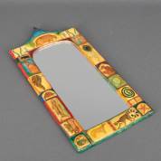 Spiegeltje met spitsvormige kap, het geheel met dierendecor, ontwerp en uitvoering Marianne van der Vliet -enkele scheurtjes-, 54 × 26 cm