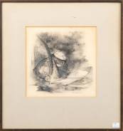 Dirkje Kuik (1929-2008), schrijvende man, pen en krijt op papier, r.o. gesigneerd William D. Kuik, 18 × 18 cm, herkomst: Galerie Jas, Utrecht