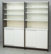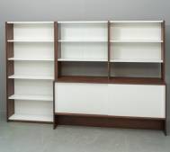 Twee kasten met witte formica deuren en schappen in wengégefineerde ombouw, beide ontwerp Martin Visser, uitvoering 't Spectrum, model KW89 -fineerschades-, 160 × 160 × 35 cm, en model WW70, 164 × 80 × 26,5 cm