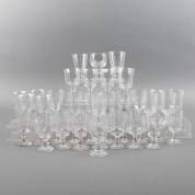 40 diverse wijnglazen, deels met versierde kelk, hoogste glazen 15 cm