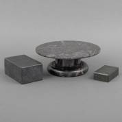 Natuurstenen plateau op voet, schaaltje, en twee basementen, plateau 8 × 25,5 cm