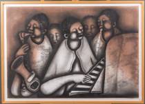 David Mbele (1942), muzikanten, houtskooltekening, m.o. gesigneerd, 64 × 91 cm