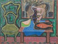 Ferdinand Joseph 'Ferry' Sleebe (1907-1994), stilleven met vis en meloen, gouache op papier, r.o. gesigneerd en gedateerd '53, 46 × 62 cm