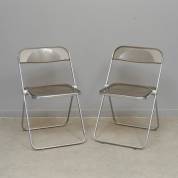 Paar buisframe klapstoelen met plexiglazen rug en zitting, gemerkt, model Plia, ontwerp Giancarlo Piretti, uitvoering Castelli, Italië, jaren '60 -gebruikssporen, roest-, 75 × 47 × 47 cm