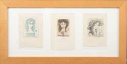 Ludmila Jirincová (1912-1994), drie etsen: vrouwenportretten, alle m.o. gesigneerd, tezamen ingelijst, maat per stuk 14 × 9 cm