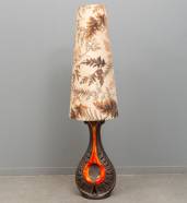 Grote bruin-oranje keramische lampvoet met hoge conische kap, West-Germany -barst in voetrand-, hoogte voet 68 cm