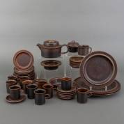 Bruingeglazuurd porseleinen theeserviesgedeelte, model Ruska, ontwerp Ulla Procope, uitvoering Arabia, Finland, bestaande uit: elf kop-en-schotels, theepot, roomstel, zes taartbordjes Ø 17,5 cm, vijf taartbordjes Ø 16 cm, en divers dienservies
