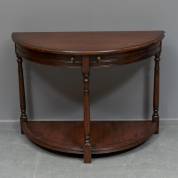Eiken halvemaantafeltje met twee lades en open basement, 20e eeuw, 72 × 99 × 45 cm