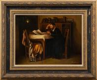 Duitse School: rabbijn aan tafel, olieverf op paneel, r.o. gesigneerd A. Fleischman, 30,4 × 40 cm