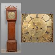 Engels staand horloge met messing wijzerplaat in eiken kast, adres: James Thomas, Chester, circa 1780, 216 × 50 × 27 cm