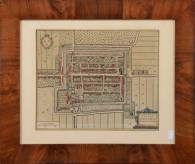 Plattegrond van Vianen, ingekleurde gravure, uitgegeven door Joan Blaeu, 17e eeuw, 21 × 25 cm