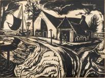 Jan Wiegers (1893-1959), huis bij weg en vaart, houtsnede, r.o. gesigneerd en l.o. gedateerd 1935 -papier wat verbruind en gebobbeld-, 25 × 33 cm