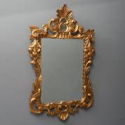 Verguld houten spiegel met rocailles en voluten, 20e eeuw -onderste ornament gelijmd-, 110 × 67 cm