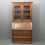 Naaldhouten secretaire met beglaasde opstand, 19e eeuw -gebruikssporen-, 213 × 107 × 55 cm