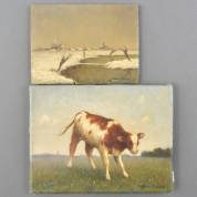 Johan Becker (1894-1972), twee werken: landschap met koe, olieverf op doek, r.o. gesigneerd, 18 × 24 cm, en winterlandschap met sloot, olieverf op paneel, r.o. gesigneerd, 14 × 18 cm