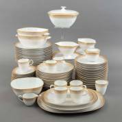 Porseleinen serviesgedeelte met gepoederde vergulde rand, uitvoering Rosenthal, Duitsland, waaronder: 12 dinerborden, Ø 25 cm, en 12 soepborden, Ø 22,5 cm