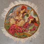 Figuratief Perzisch tapijt met decor: twee vrouwen in landschap, Ø 97cm,