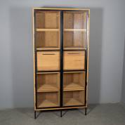 Eiken kast met glazen deuren, waarachter vakken en twee lades, modern, niet demontabel, 201 × 100 × 44 cm