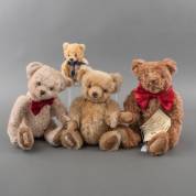 Dean's Rag Book Company: teddybeer 'William', roze-bruin mohair, gelimiteerde uitgave 6/1500, met certificaat, teddybeer 'Daniel', lichtbruin mohair, 182/1500, teddybeer 'Dennis', goud mohair, 194/2000, en teddybeer, lichtbruin mohair, uitvoering Dean's Rag Book Company Ltd., Pontypool, Gwent, UK, 44 cm