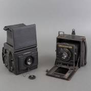 Twee plaatcamera's: model Reflex, uitvoering Ica, en Compur Speed Graphic, uitvoering Folmer Graflex, beide tweede kwart 20e eeuw