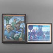 Gorki Bollar (1944-2015), twee werken: 'Arcadia', collage met acrylverf op papier, r.o. gesigneerd, 46 × 38 cm, en 'The joy of the return', harsprent 3/10, r.o. gesigneerd en gedateerd '88, 30 × 40 cm