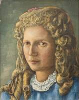 Schilderij: portret van een meisje, olieverf op doek, niet gesigneerd, 20e eeuw, 30 × 24 cm