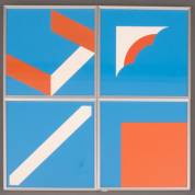 Vier zeefdrukken: Color Field-composities van William Turnbull, Ellsworth Kelly, Georg Karl Pfahler en Bob Bonies, uitgegeven bij de catalogus van de expositie 'Vormen van de kleur' in het Stedelijk Museum in 1966/1967, oplage van 2200 exemplaren, 26,5 × 26,5 cm