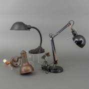 Zwarte metalen bureaulamp, art deco, bronskleurige metalen bureaulamp, midden 20e eeuw, en zwarte metalen bureaulamp, modern -gebruikssporen-, 40 cm