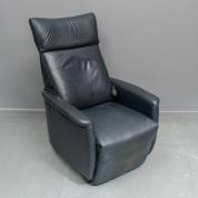 Relaxfauteuil met donkerblauwe lederen bekleding, elektrische bediening en stoelverwarming, uitvoering Ciar, Italië
