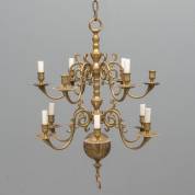 Twaalflichts messing bolkroon, 19e eeuw, maat zonder ketting 49 × Ø 50 cm