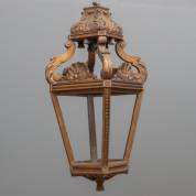 Bronskleurig houten karkas van een lantaarn, Louis Quatorze-stijl maar van later datum -geen glas noch lichtpunt-, 85 × 35 × 35 cm